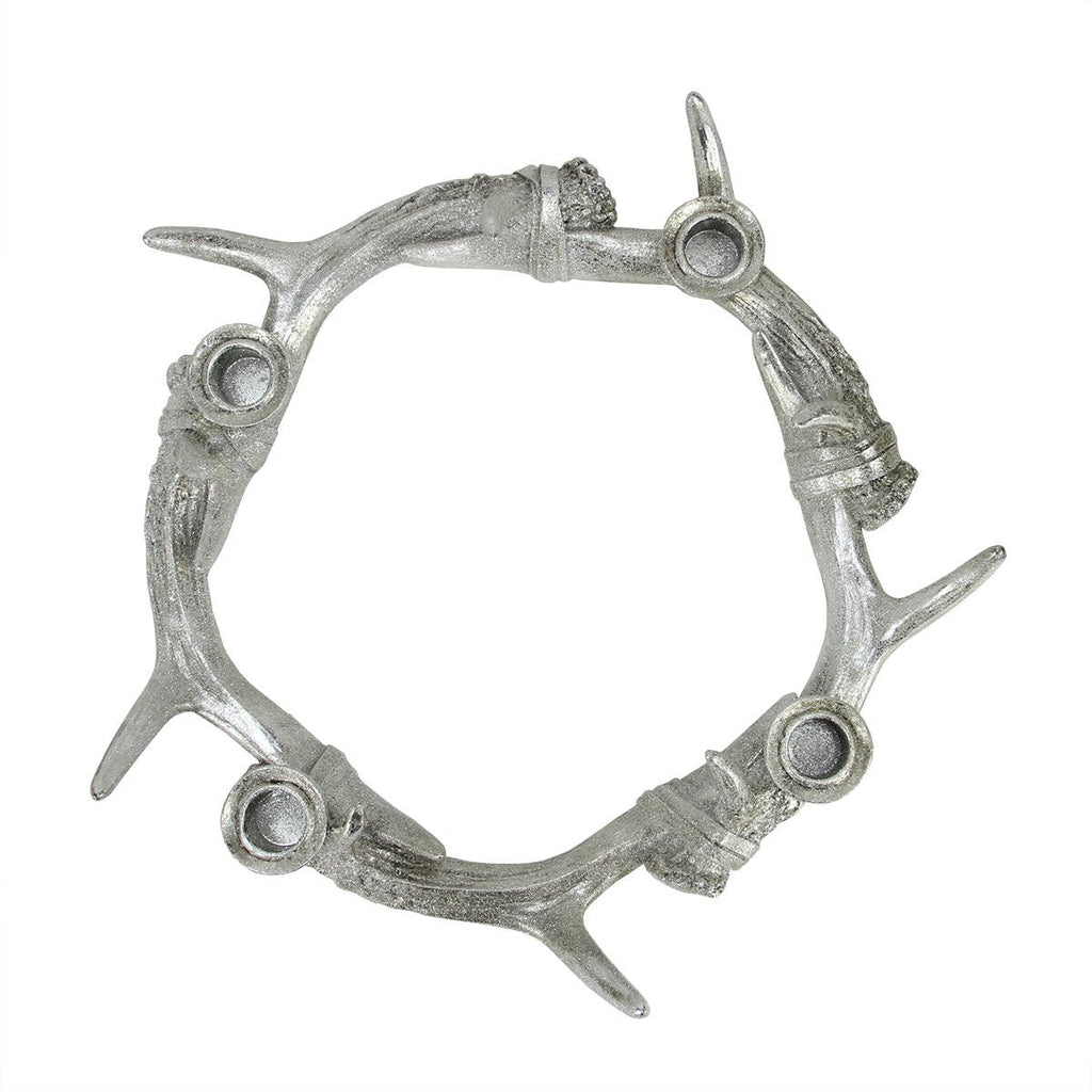 13.5" Silver Glitter Drenched Antler Wreath Christmas Taper Candle Holder Centerpiece
