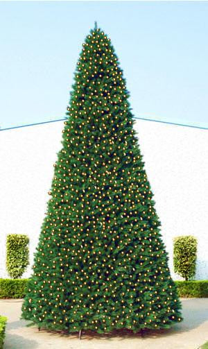 18 Foot Giant Commercial Artificial Christmas Tree Item #K4373-18T Features: 12,600 tips 400 branches Pre-lit with 1,050 LED lights Bulb color: warm white "Warm white" also known as "warm clear" has a nice natural warm incandescent like glow Bulb size: C7 If one bulb burns out, the rest will stay lit Full profile tree Designed for easy construction - goes together 25% faster than traditional giant trees Frame: easy panel construction, universal panels for each layer Ladder is built into the frame of the tree for super easy set-up UL listed for indoor/outdoor use Comes with spare replacement bulbs and fuse Dimensions: 18 feet high (from the base to the top of the tree) 88.58 inch base diameter (widest point) Material(s): PVC/metal/plastic bulbs/wire/metal