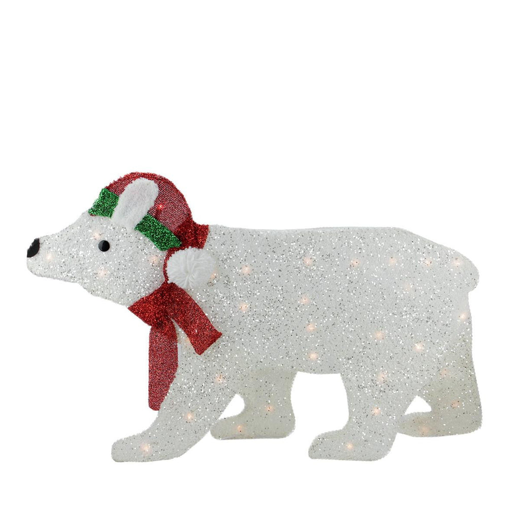19" Lighted White 2-D Glittered Polar Bear Christmas Yard Art Decoration