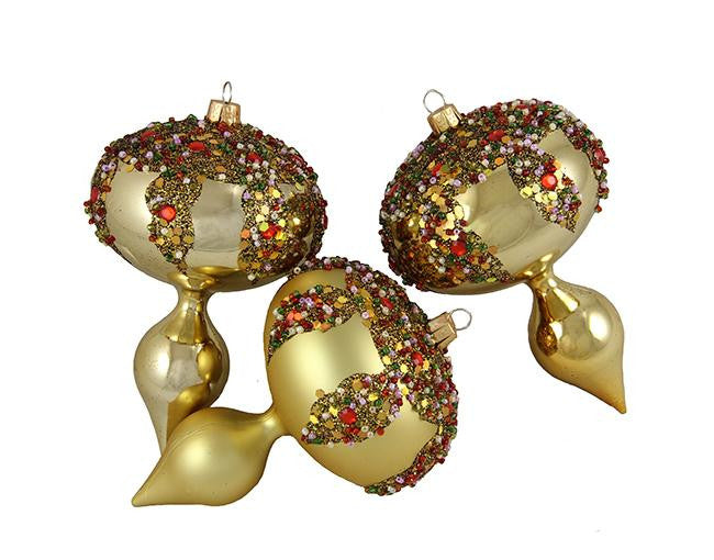 3ct Gold Glitter Sequin Beaded Shatterproof Christmas Finial Ornaments 5"