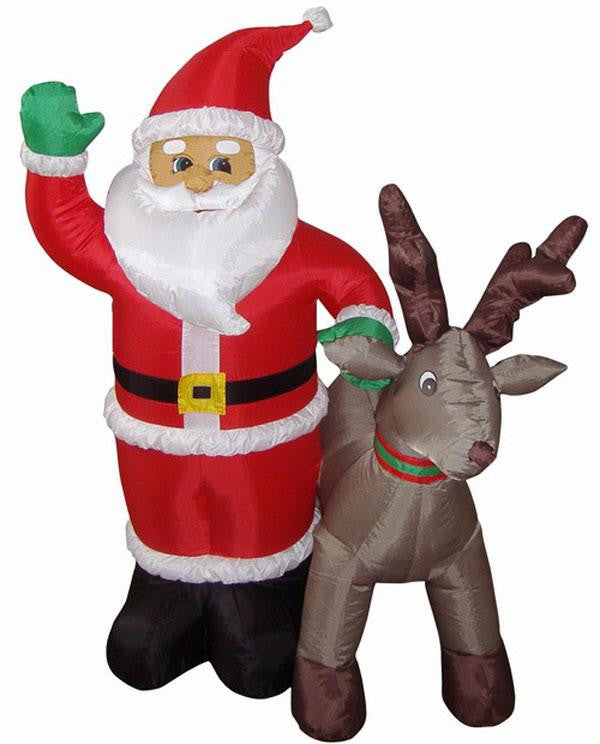 4' Inflatable Santa with Reindeer Lighted Christmas Yard Art Decoration
