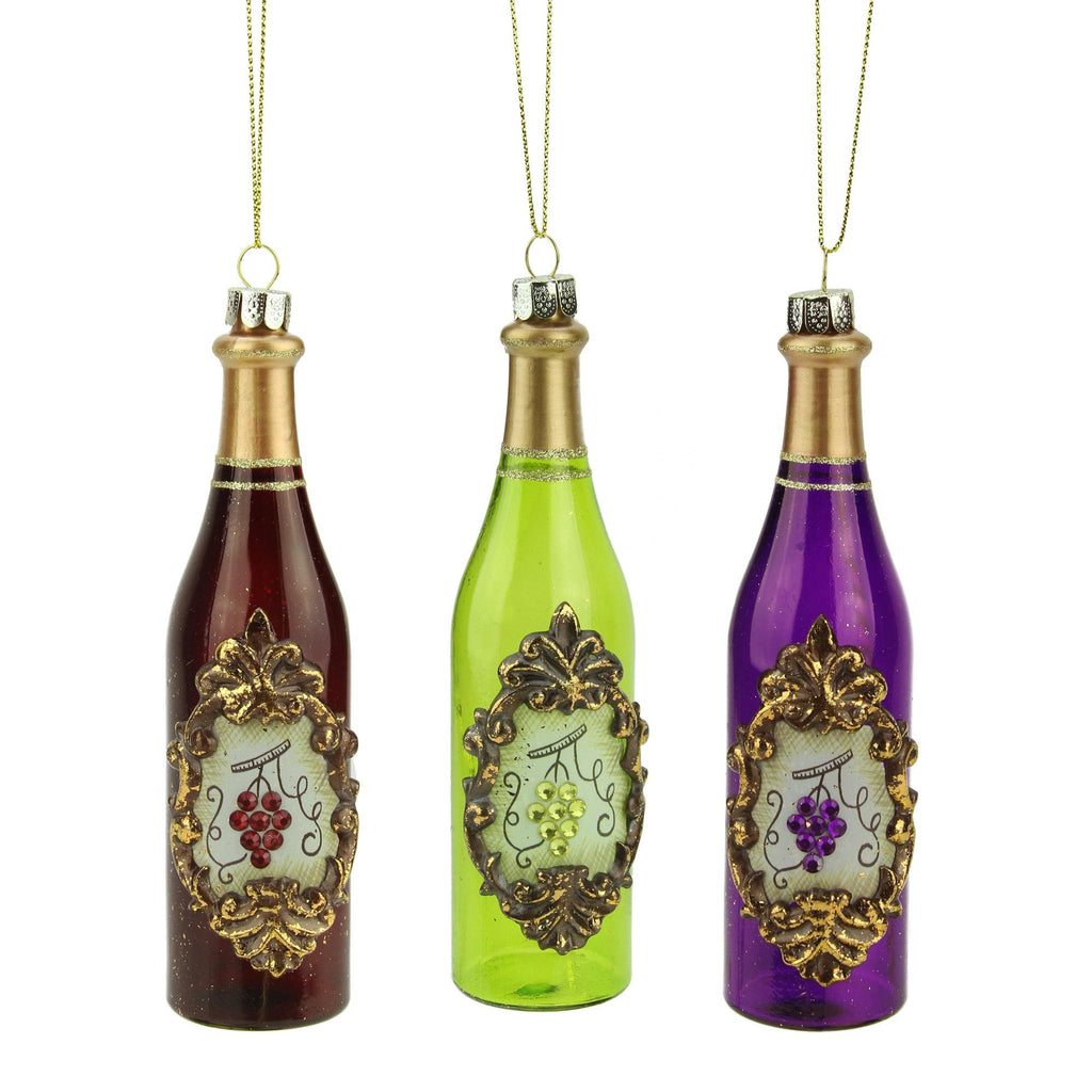 5.5" Tuscan Winery Purple Wine Bottle Glass Christmas Ornament