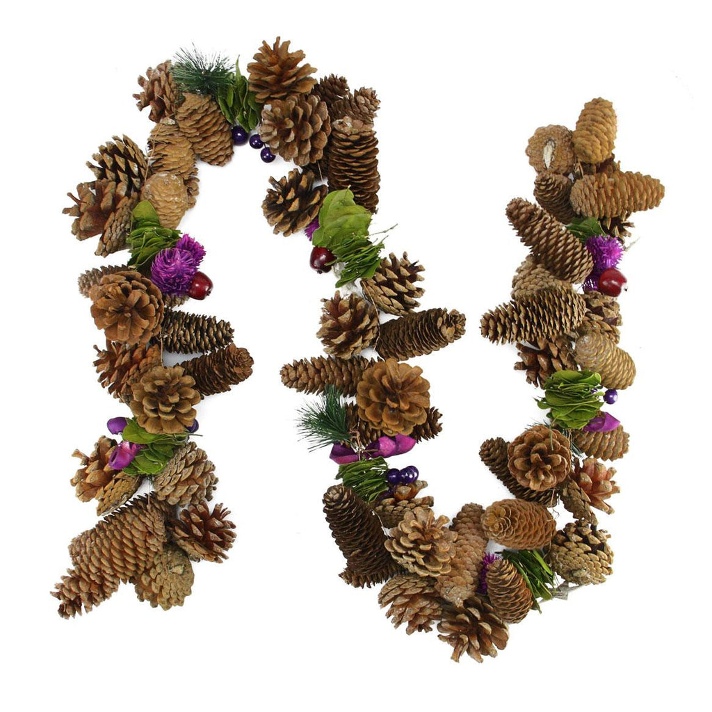 Add a special touch to your holiday decor with this beautiful pine cone and berry garland Product Features: Unlit Twine cord on one end for easy hanging For indoor use only Dimensions: 5' long x 5" wide Material(s): pine cones/wood/man-made material