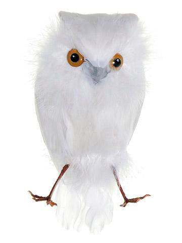 White Snow Owl Item #BB9800-WH This life-like feathered owl figure is sure to charm Comes ready-to-attach with wire in the feet Dimensions: 6.5"H x 4"W x 3"D Material(s): feathers/plastic/wire