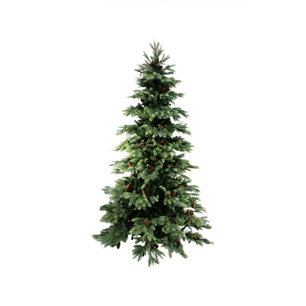 This New England pine features a mixture of perfectly molded PE tips mixed with two-tone green traditional PVC tips, with pine cones, that give the tree a nice full, realistic, lush look Product Features: 1173 tips Unlit Medium profile tree Hinged branch construction For indoor use only 4-piece easy assembly (including stand) Comes with a FREE black metal tree stand Dimensions: 7' high (from the base of stand to the top of the tree) 52" base diameter (at widest point) Material(s): PE/PVC/metal