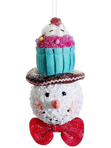 8.5" Cupcake Heaven Glitter Sequined Snowman with Cupcake Hat Christmas Ornament