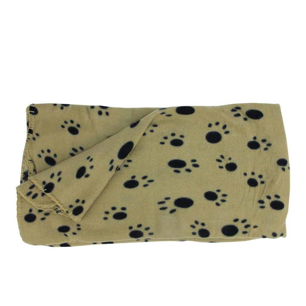 Keep your favorite furry family member warm and cozy with this adorable fleece throw blanket Features a beige background with a black paw print pattern on both sides Makes a soft and soothing addition to a pet bed, crate, mat, or even your own lap Perfect for most small and medium sized dog breeds, or even a cat Care Instructions: spot clean or machine washable in cold water with mild detergent, line dry only Overall dimensions: 0.1"H x 55"W x 45"D Material(s): polyester fleece