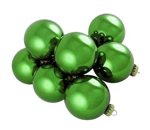 Pack of 16 Dasher Green Candy Glass Ball Christmas Ornaments Item #9162079 Shiny finish These high end glass balls are all individually mouth blown and hand painted The inside of each ball is hand coated with proprietary silver solution to create a reflective glass look on the outside of each ball Ornaments come ready-to-hang on a gold cord Dimensions: 4" diameter (100mm) Material(s): glass ball with gold metal hanger
