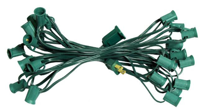 50' Commercial C9 Christmas Light Socket Set - 12" Spacing 18 Gauge Green Wire