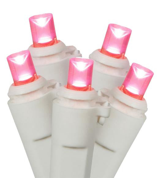 Set of 100 Pink LED Wide Angle Christmas Lights - White Wire