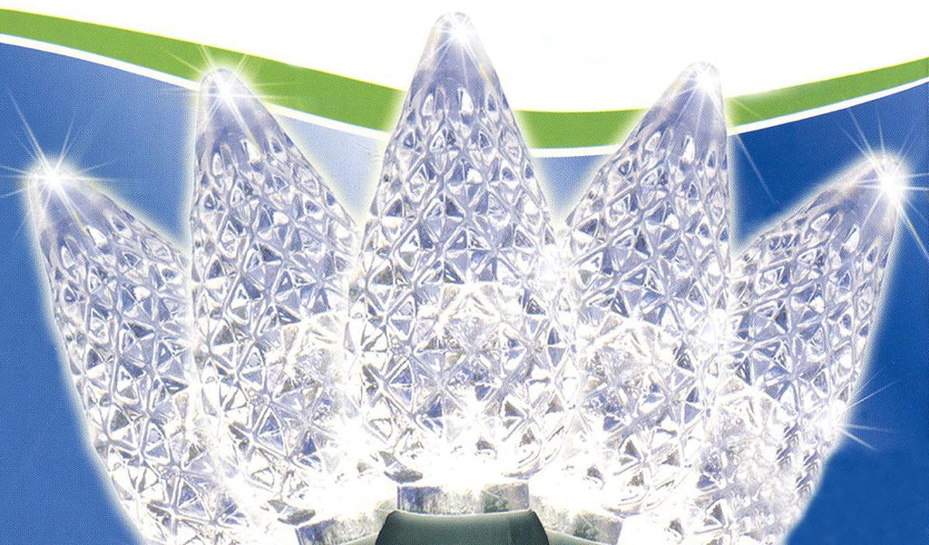 Set of 50 Faceted Polar White LED C6 Christmas Lights - Green Wire